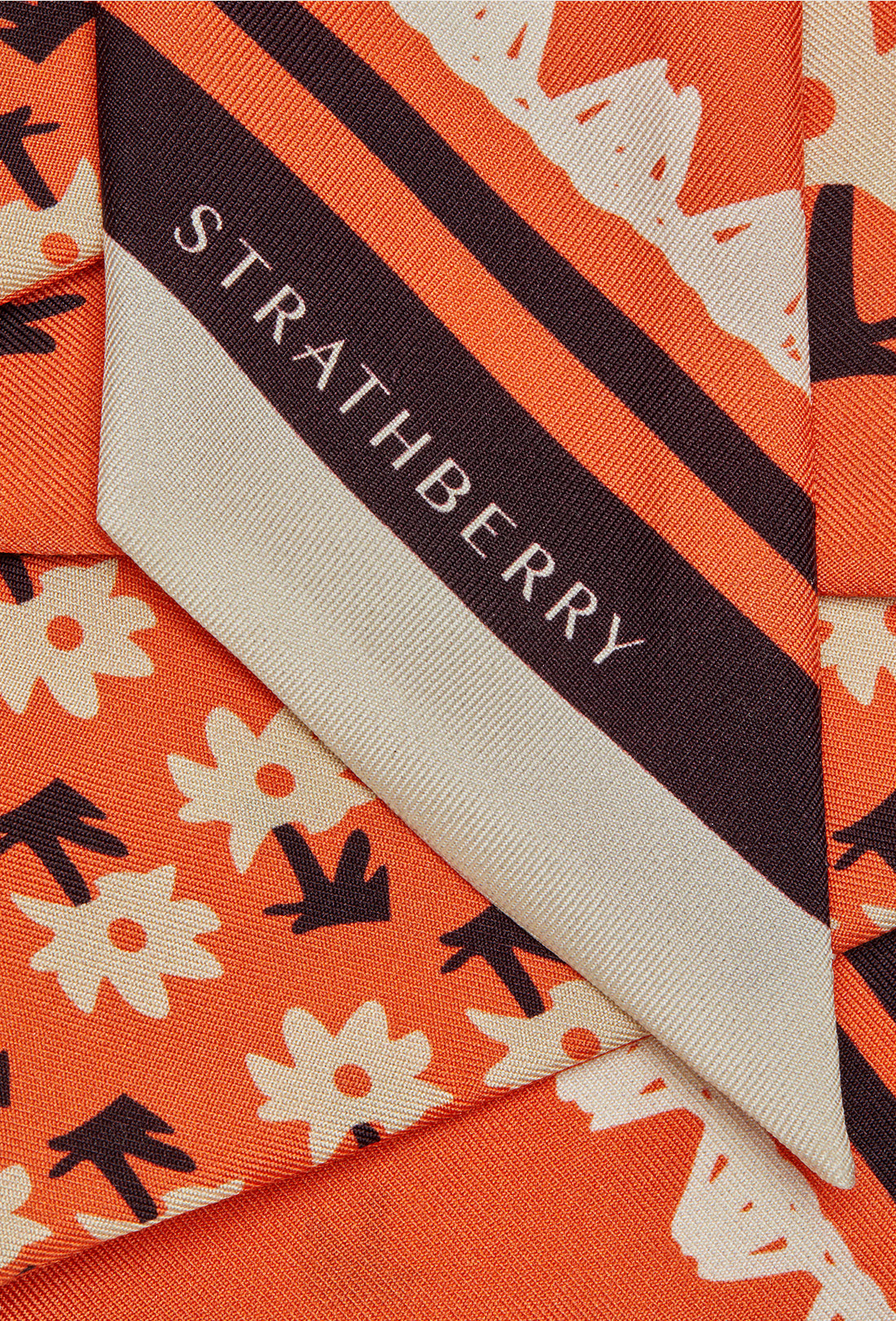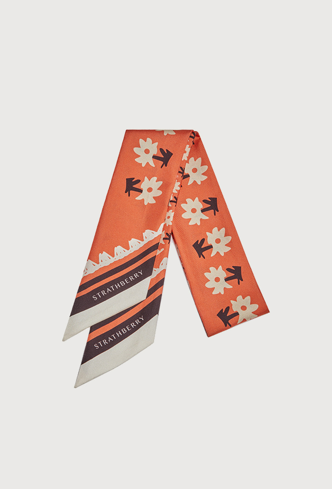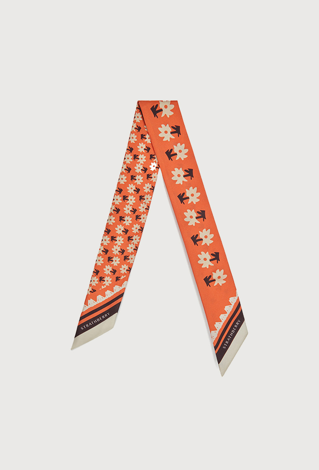 Handmade in UK from 100% silk and featuring a floral print. this scarf can be worn around the neck. in the hair or looped around the handle of a handbag to add a touch of personality to any look.